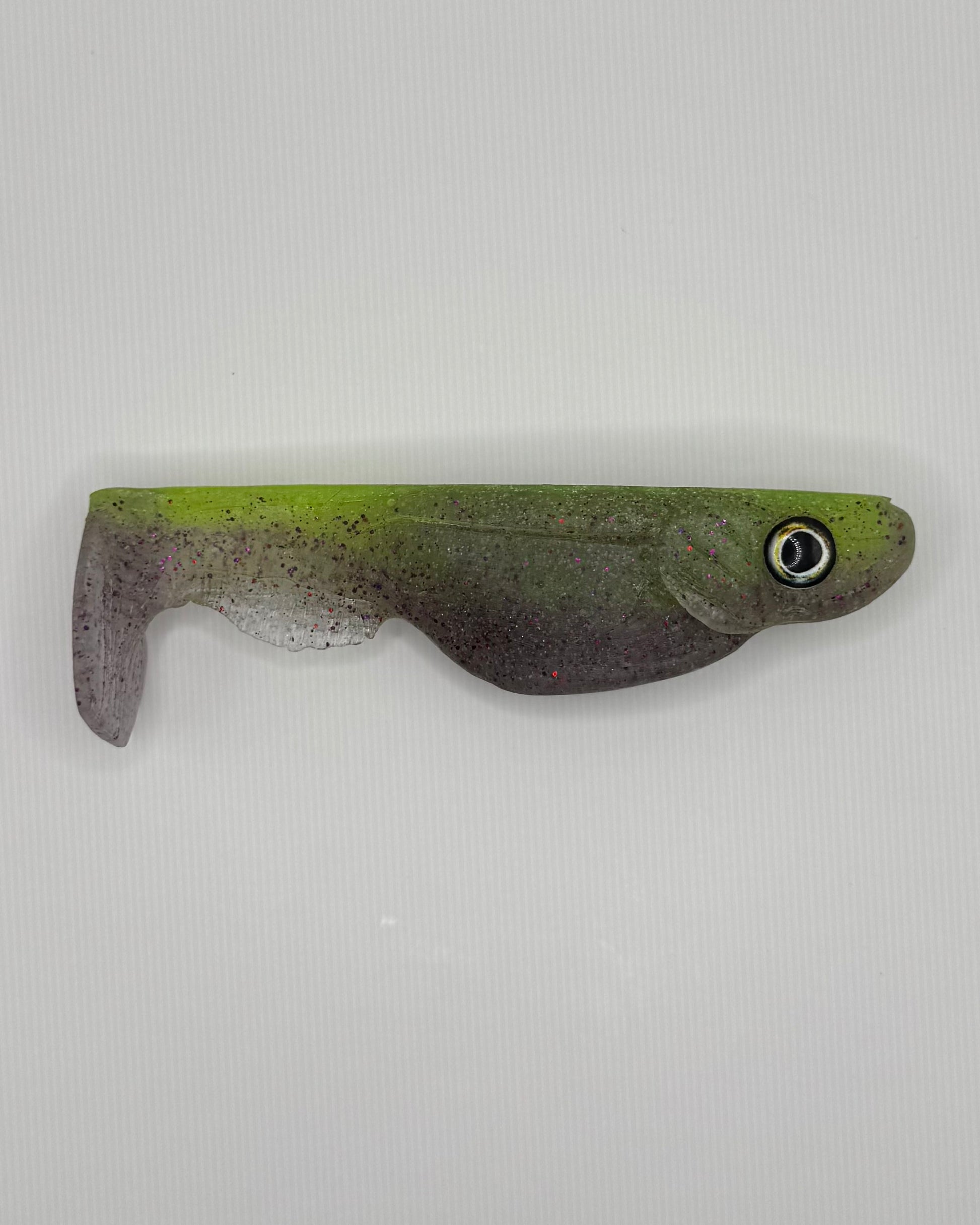 A 4.75" soft-body swimbait built to fish anywhere—from grass and laydowns to docks and open water. It delivers a bold tail kick, aggressive thump, and subtle head wobble for lifelike action.